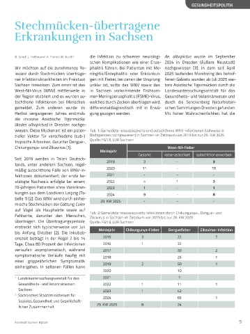 wiesen . Diese Mückenart ist ein poten- Tab . 1: Gemeldete reiseassoziierte und autochthone WNV-Infektionen (teilweise in