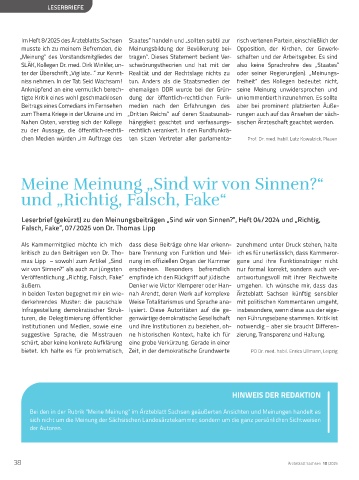 mas Lipp – sowohl zum Artikel „Sind nung im offiziellen Organ der Kammer gane und ihre Funktionsträger nicht
