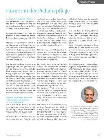 Ausdruck der Begabung von uns Men- Der Humor auf einer Palliativstation ist und kommt manchmal etwas „schwarz“