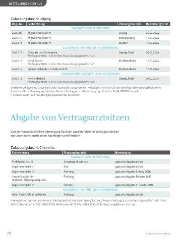 Von der Kassenärztlichen Vereinigung Sachsen werden folgende Vertragsarztsitze