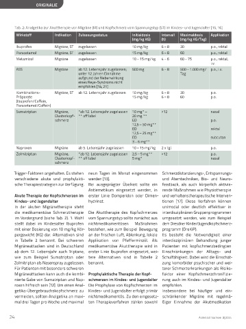Tab. 2: Analgetika zur Akuttherapie von Migräne (M) und Kopfschmerz vom Spannungstyp (ST) im Kindes- und Jugendalter [15, 16]