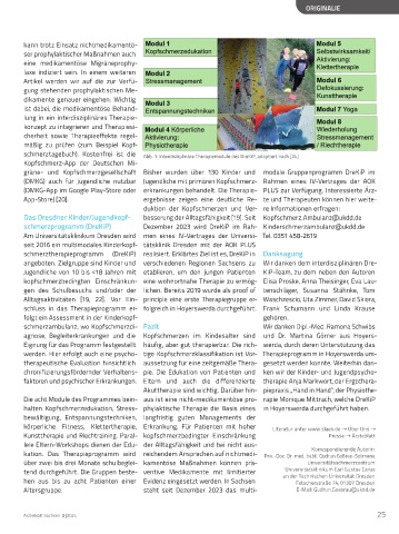 schmerztagebuch). Kostenfrei ist die Abb. 1: Interdisziplinäre Therapiemodule des DreKiP, adaptiert nach [24]